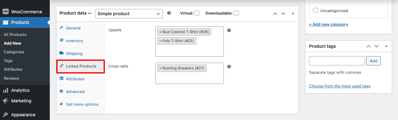 In the Linked Products tab, you can add upsell and cross-sell products. Explore the best practices to get the most from your upsell and cross-sell.